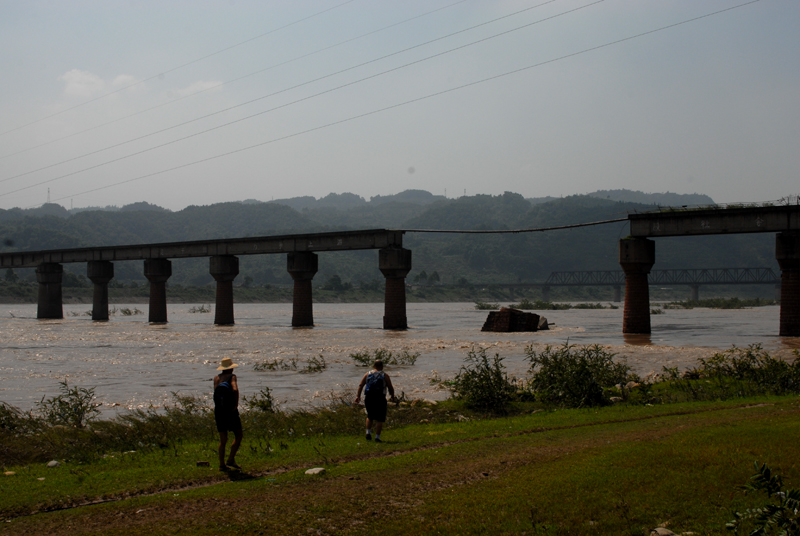 位当年的建设者告诉我,2008年5月12日大地震的时候,他们俩正在桥下游泳,当时水在跳、桥在摇,到一直没有倒!不想,今年的大洪水居然把熬过地震的大桥给冲垮了。可见,今年的洪灾也太大了!