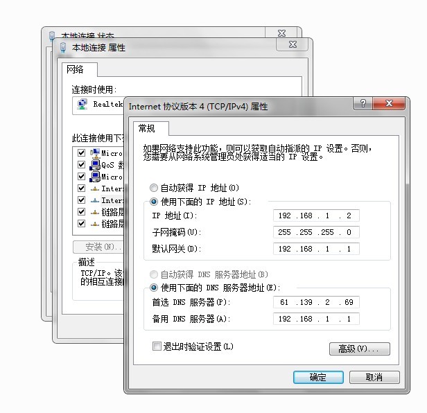 手动设置本地DNS 61.139.2.69