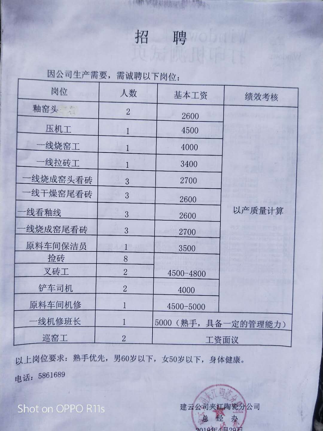 急招长白班铲车司机1名,月工资6000元。要求:持操作证,熟手优先。电话:****或****(严主任)