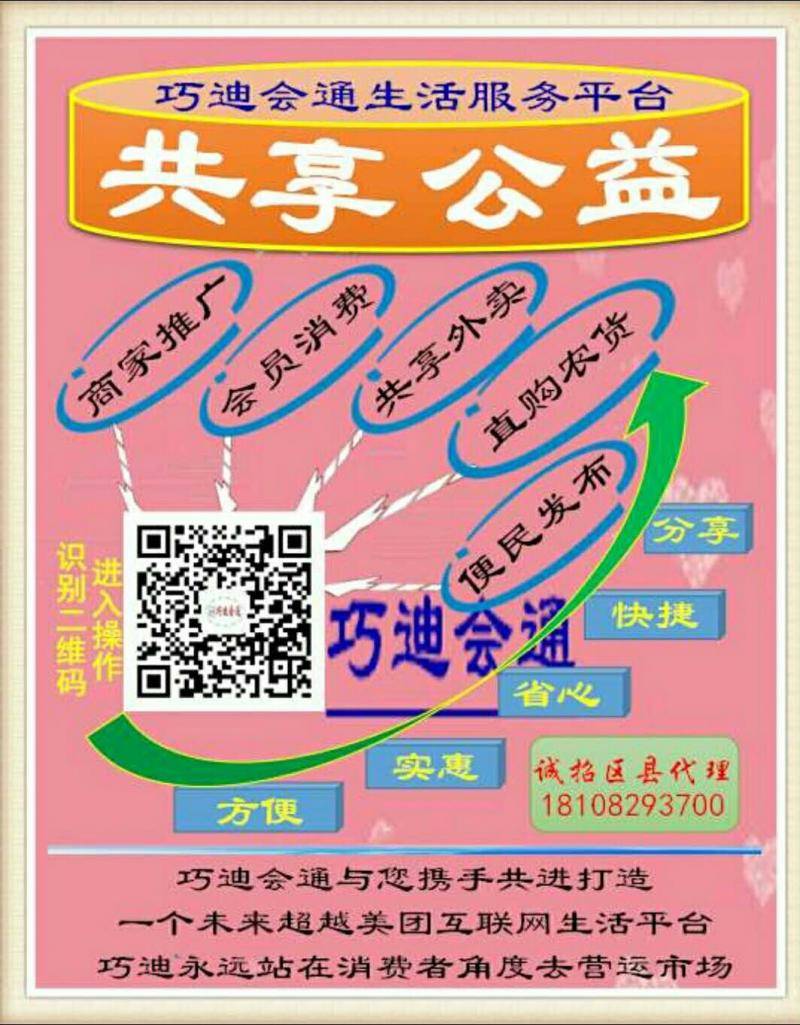 ♦ 【巧迪会通】努力打造引导消费服务行业的佼佼者,总部设在四川成都市锦江区,拥有雄厚市场推广能力、优质团队管理体系、建立了独立操作运行后!总部在发展战略规划,发展目标和相应的实施方案,公司统一营运方案将快速的投放全国内县(区)市场。