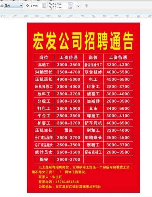 宏发瓷业通过2019年的努力,已经缓释了近年来退城入园对企业影响! 尤其是在去年公司又投入1500万元对多项大型设备进行了更新!而今在全县阻击新型冠状病毒取得了伟大胜利之际,我公司为积极响应党和政府的号召!定于2020年3月2号正式复产!现在诚聘急招下列岗位的员工(见后表)!欢迎各位前来加盟宏发!公司郑重承诺:决不拖欠员工工资!具体为:2020年3月的工资4月28日准时发放!以后每月28日为雷打不动的工资发放日!