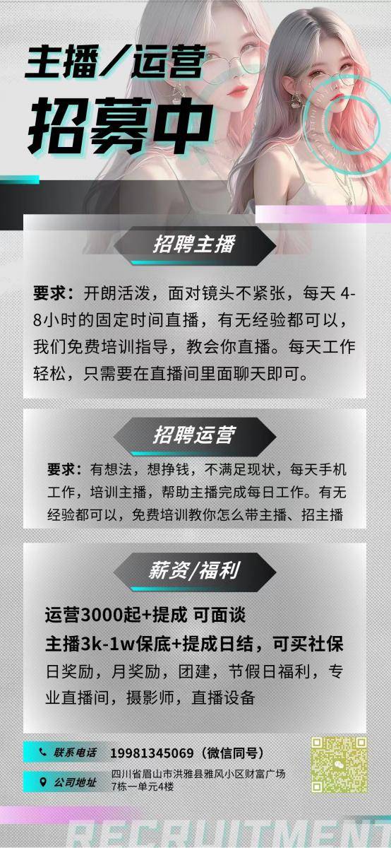 职务: 运营 主播 直播招募 人事