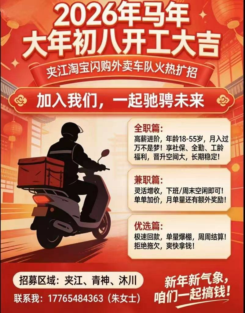 🧨 大年初八,开工大吉!马到成功! 夹江淘宝闪购车队,火热扩招中!🚀 🐎 ...